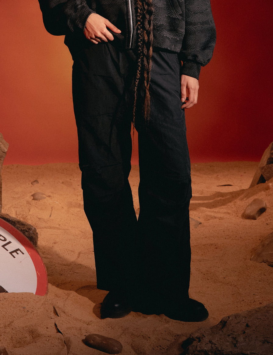 BLACK WATERPROOF PARACHUTE PANTS